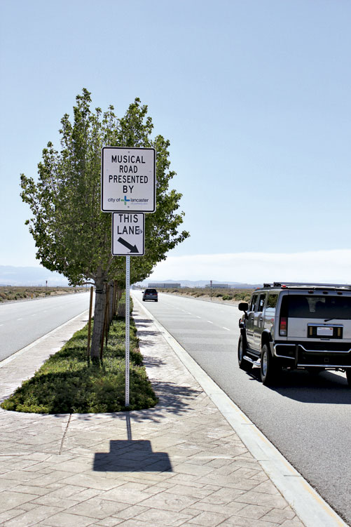 Usando pequenas ondulações no asfalto e as vibrações dos pneus de um carro, é possível fazer estradas reproduzirem músicas (a da foto, na cidade americana de Lancaster, toca “William Tell Overture”, de Rossini, desafinada). No geral, é apenas uma curiosidade turística, mas há uma estrada na Coreia do Sul que foi feita para tocar uma cantiga quando os carros passam a 100 km/h e manter motoristas alerta.