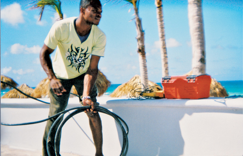 Juan fez questão de fazer tudo dentro da lei. Em seis meses, estava com o visto de residência na República Dominicana. Na época, o trâmite custou US$ 40. “Pode parecer pouco, mas, para um país que tem 80% de sua população abaixo da linha de pobreza, era um bom dinheiro”, diz. Juan arrumou emprego como recepcionista de um hotel e mandou buscar mulher e dois filhos em sua cidade natal alguns meses depois. Hoje vive no bairro de Beròn, que concentra trabalhadores haitianos e dominicanos em condições modestas, porém habitáveis, a 15 min de Punta Cana. E não desistiu da luta. “A grande maioria de meus conterrâneos vive escondida em lugarejos chamados bateys, próximos de resorts em construção ou no meio de canaviais. E é para eles que dedico meu tempo livre, quando falo diretamente aos haitianos que estão aqui no meu programa de rádio evangélico. Eles precisam de suporte espiritual e de ajuda humanitária”, diz Juan.