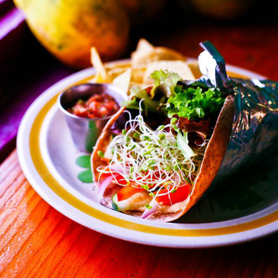 O Café Gratitude serve pratos orgânicos e veganos, e todos os ingredientes vêm da produção de agricultores locais. O menu criado pelo chef Dreux Ellis muda com as estações e tem como objetivo apoiar a sustentabilidade da comunidade e do meio ambiente.
