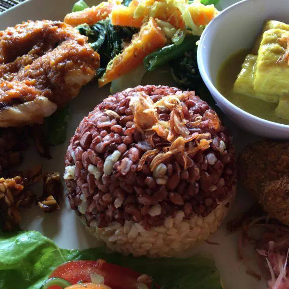 O Sari Organik é uma pequena empresa familiar dedicada ao cultivo de frutas orgânicas, legumes e arroz indonésio indígena. Para chegar até lá, é preciso passar por um sinuoso caminho através de campos de arroz e coqueirais, mas vale a pena. Todos os ingredientes que eles utilizam vêm de uma fazenda do outro lado da estrada. Experimente a salada de tofu e tempura de legumes com molho de amendoim, uma delícia.