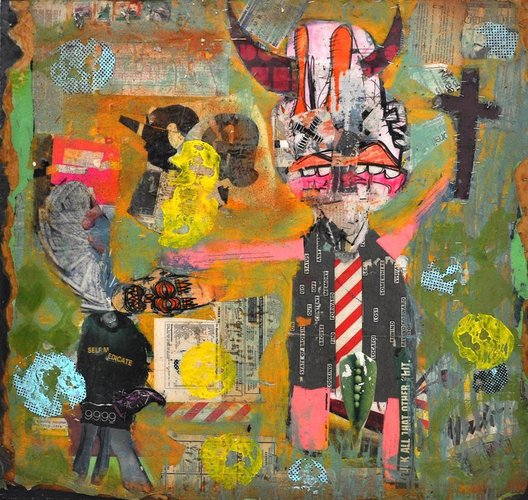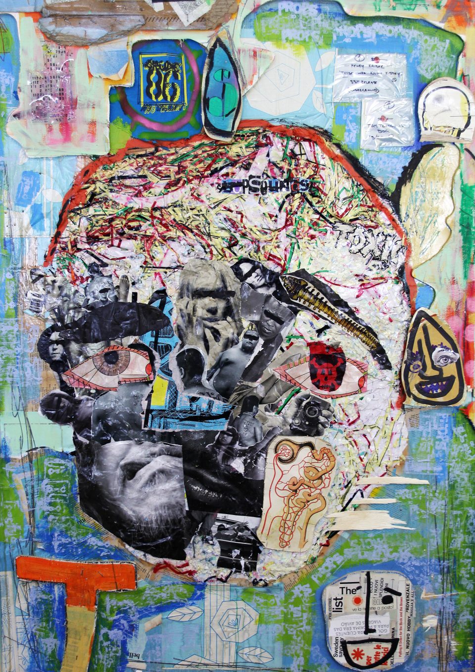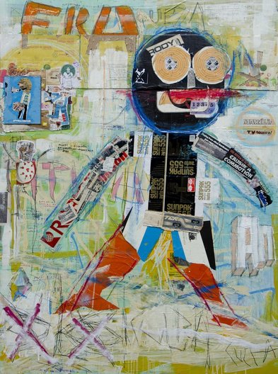 O acúmulo de objetos, pintura texturizada e madeira recortada, que fazem parte da estética do artista, vem muito do seu próprio ambiente de trabalho (um ateliê repleto de objetos achados na rua e doados por amigos) e do seu histórico de experimentação e referências. “É uma técnica que faço desde muleque, desde os cartazes de punk e hardcore. A dificuldade é mesclar essa linguagem do punk, do skate e da música e também conseguir uma técnica mais refinada, focada em texturas”, diz o vocalista da banda Garage Fuzz.