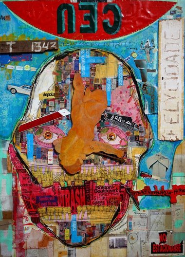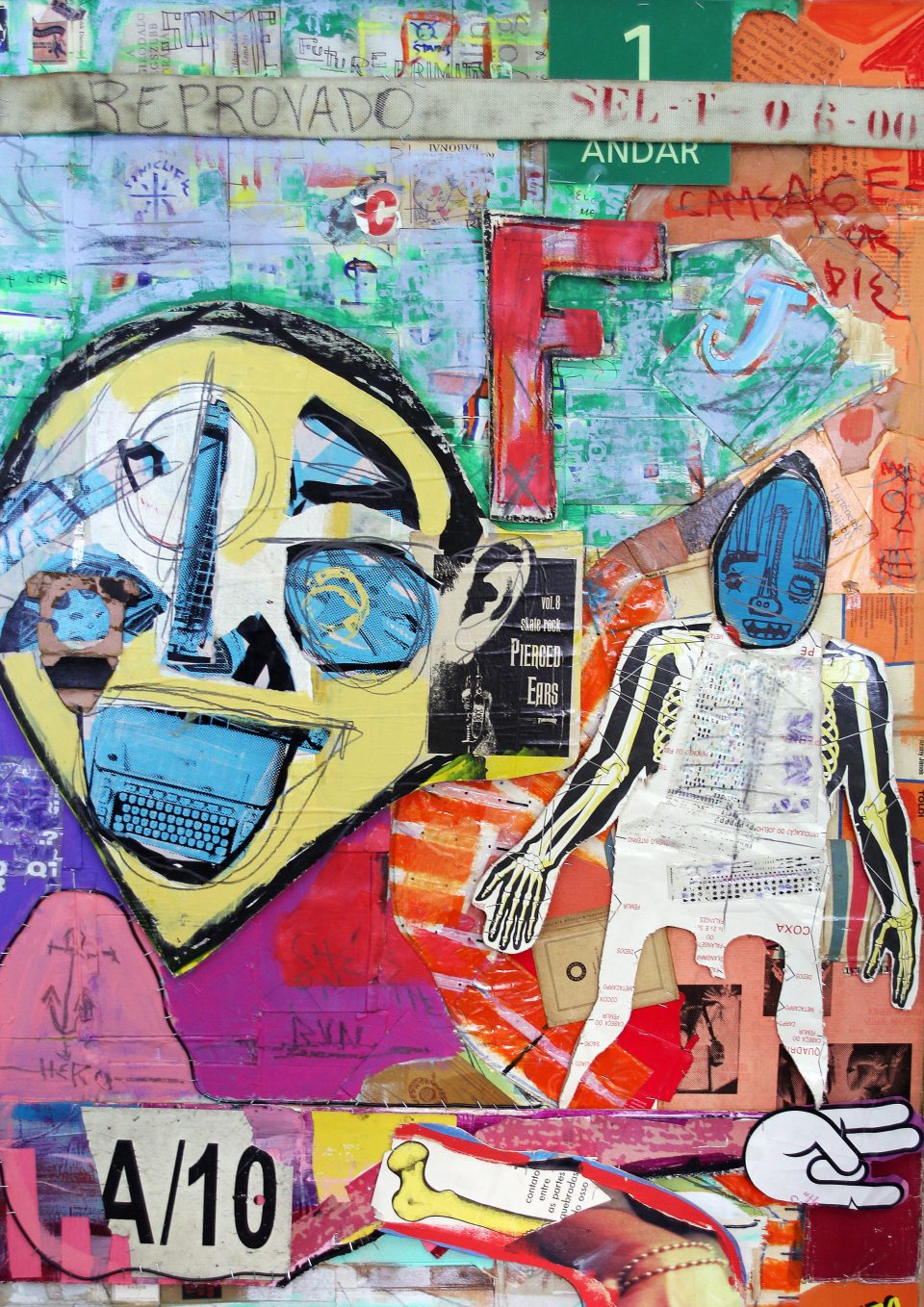 A Galeria Logo recebe a primeira mostra individual de Sesper até 5 de outubro. Misturada às grandes colagens, marca do artista, a exposição Reprovado abre com uma instalação. “Utilizei muito material que já estava no atelier há cinco anos ou mais. É a primeira vez que uno os dois formatos, colagem e instalação”.
