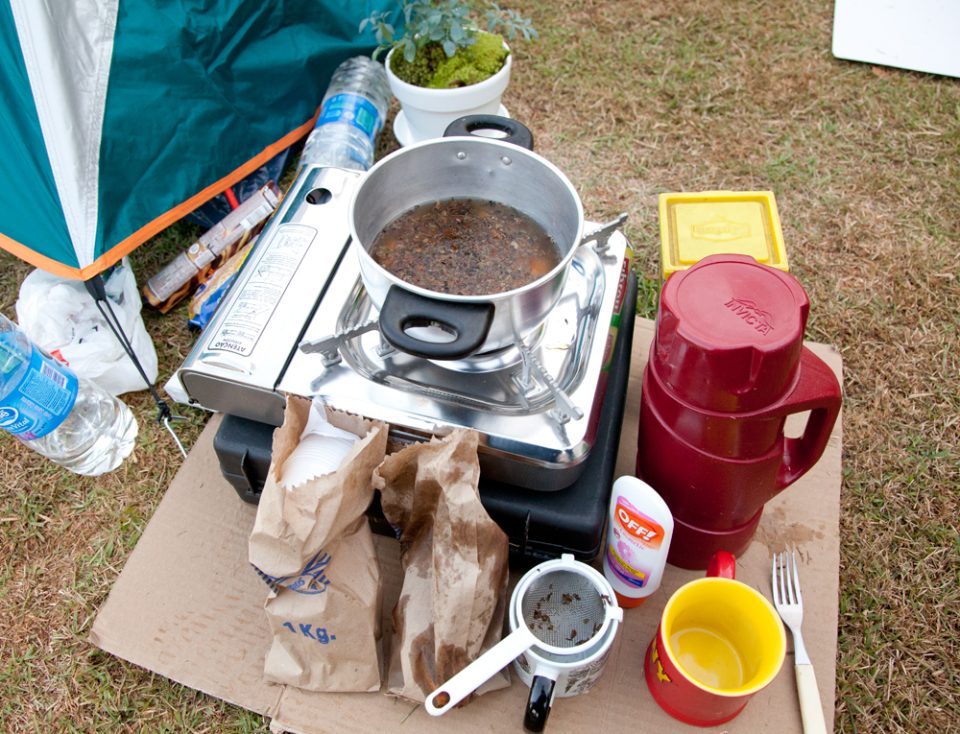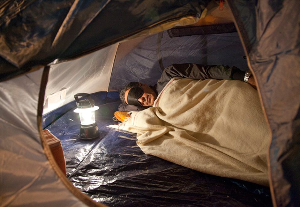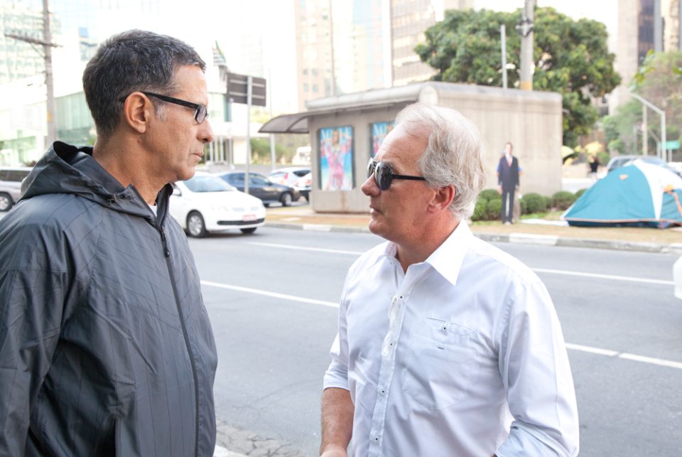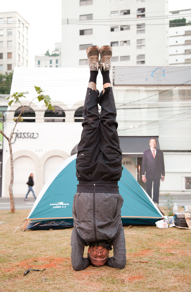 Nossa barraca se destacava ao lado de uma banca de jornal na avenida Faria Lima, colada com a Cidade Jardim, duas artérias vitais da cidade de São Paulo. A produção na noite fria dava o tom da ocupação zen. Fogareiro para fazer chá de darjelling orgânico (um capricho que não passo sem), touca de vicunha boliviana (necessidade capilar), manto sagrado do Himalaia bordado por monges cegos (um must have de meu closet) e uma felpuda máscara para dormir, souvenir de uma viagem de primeira classe para Dubai.