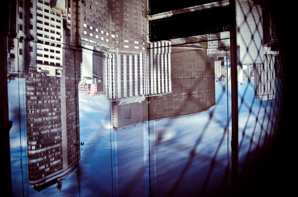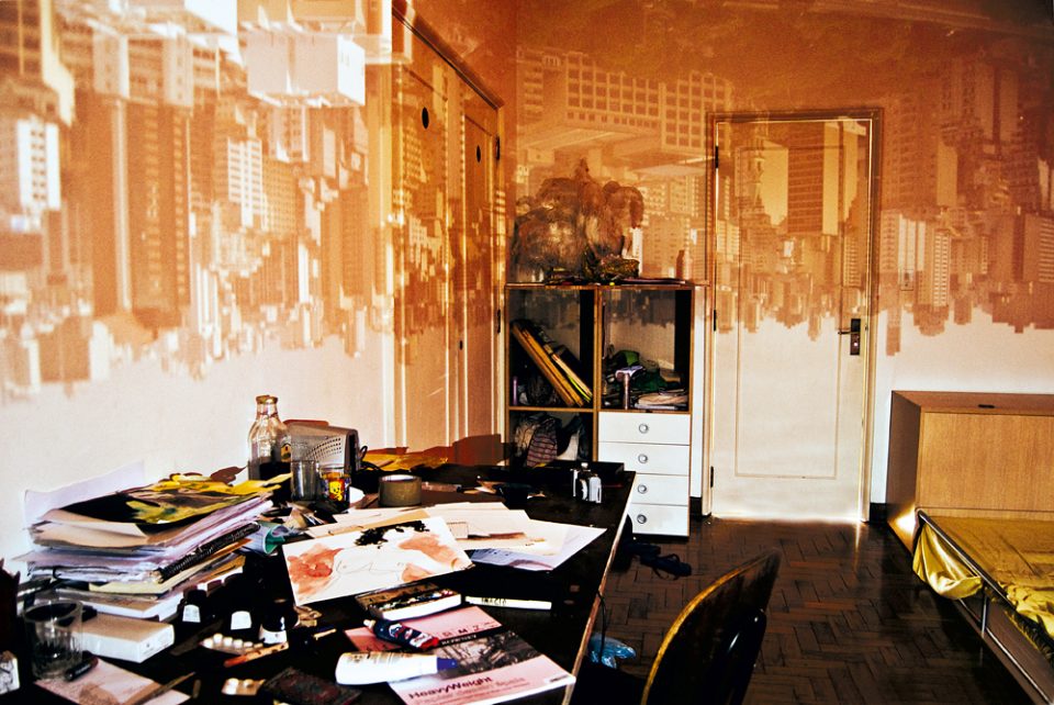 | Pablo Saborido // câmera escura É fotógrafo argentino e assina o ensaio das imagens invertidas da cidade de São Paulo que ilustram esta matéria. Para chegar à inversão, o fotógrafo forra por completo com tecidos o espaço que deseja clicar e então abre um pequeno furo em uma parede do tecido. É nesse instante que a cidade invade a parede, só que de ponta-cabeça. “Câmera escura” convida à reflexão: se o que está fora está agora dentro, o que está dentro deve estar em algum lugar lá fora. Se ônibus passeiam pelas camas e as nuvens dançam com o chão de madeira, o que impede que a cama vá para o lugar dos ônibus e que fotógrafos dancem nas nuvens antes de o quarto ficar novamente escuro? |
