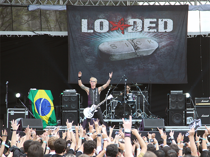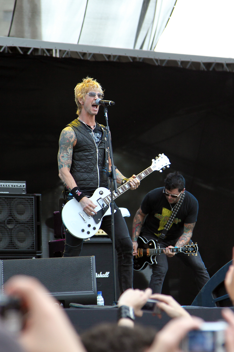 Estes útlimos abriram os shows do palco principal com seu hard rock de arena e agradaram, conseguindo arrancar fortes aplausos. Duff McKagan, ex-baixista dos Guns’n’Roses e atual do Velvet Revolver, estava à vontade no palco e relembrou três músicas de sua banda mais famosa: “So Fine”, “Dust ‘n’ Bones” e “It’s So Easy”. Os japoneses cabeludos do Dir En Grey foram os seguintes e, apesar de cantarem a maioria das músicas em japonês, colocaram o público para cantar com seu som extremamente pesado, que se inspira em riffs clássicos do metal. Diversos garotos e garotas circulavam pela Chácara do Jockey com camisetas da banda, que faz sucesso no Japão e tem 12 anos de carreira.