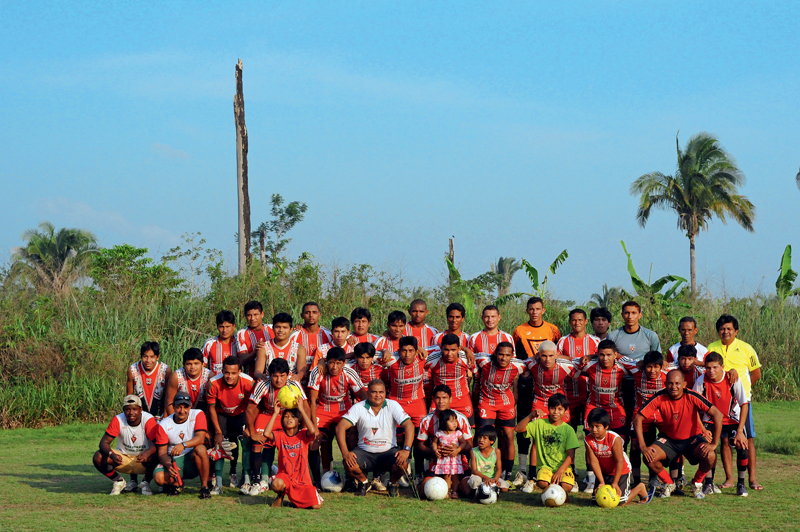 Não são apenas os homens que gostam de jogar bola: há um time feminino na aldeia que participa de campeonatos amadores na região. Mas só tivemos contato com a equipe masculina. Debaixo de um calor escaldante, os homens treinam cerca de seis horas diárias. “Agora quero uma fila aqui, agora todo mundo no chão. Pessoal, rapidinho, vamos fazer isso aqui, ó”, comanda Primo. “Eles são muito esforçados”, afirma. “Para acompanhar o ritmo pesado do treino, o branco tem de treinar dobrado. O índio possui muita garra. Sempre acredita que pode mais.”